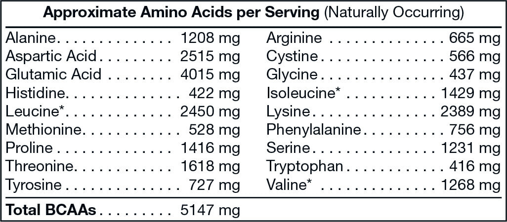 Approximate Amino Acids per Serving (Naturally Occurring)